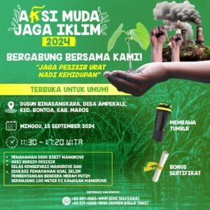 Dalam dunia yang semakin terancam oleh perubahan iklim, suara dan aksi kaum muda sangatlah penting. Bergabunglah bersama kami dalam acara “Jaga Pesisir, Urat Nadi Kehidupan!” yang akan berlangsung pada hari Minggu, 15 September 2024, di Dusun Binasangkara. Ini adalah kesempatan untuk menunjukkan kepedulian kita terhadap lingkungan dan menjadikan diri kita bagian dari solusi. Acara ini merupakan kolaborasi antara Stasiun Klimatologi Sulawesi Selatan dan berbagai lembaga serta organisasi yang peduli terhadap isu lingkungan.